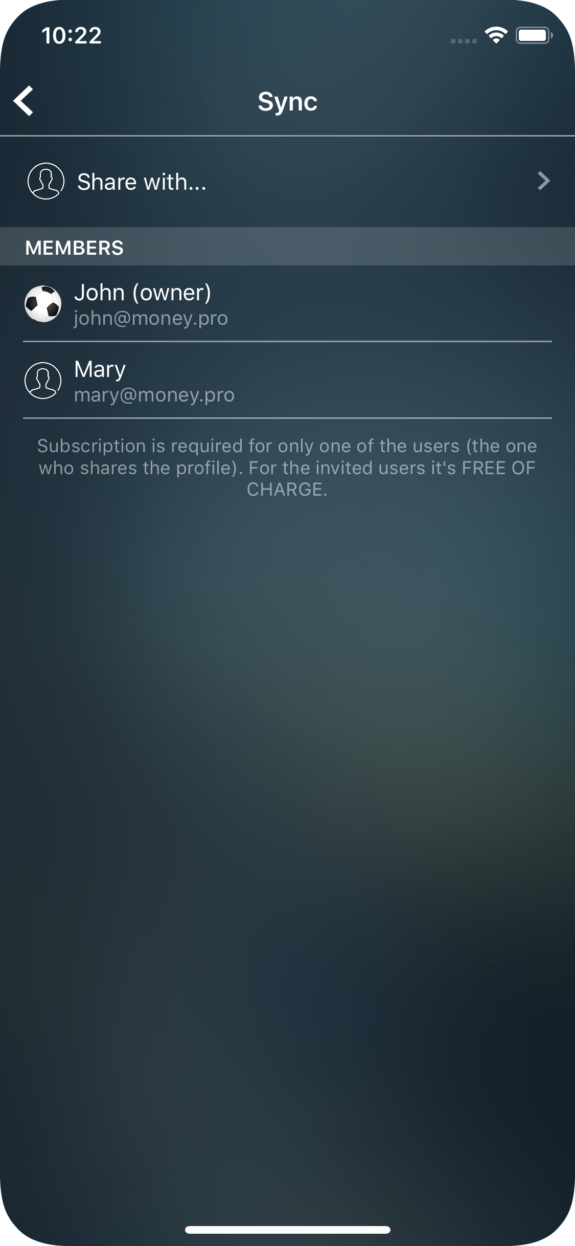 - You’ve already set up Money Tracker Sync on your device. Now you need to invite another user. Go to More > Sync and tap “Share” next to the profile you want to share.